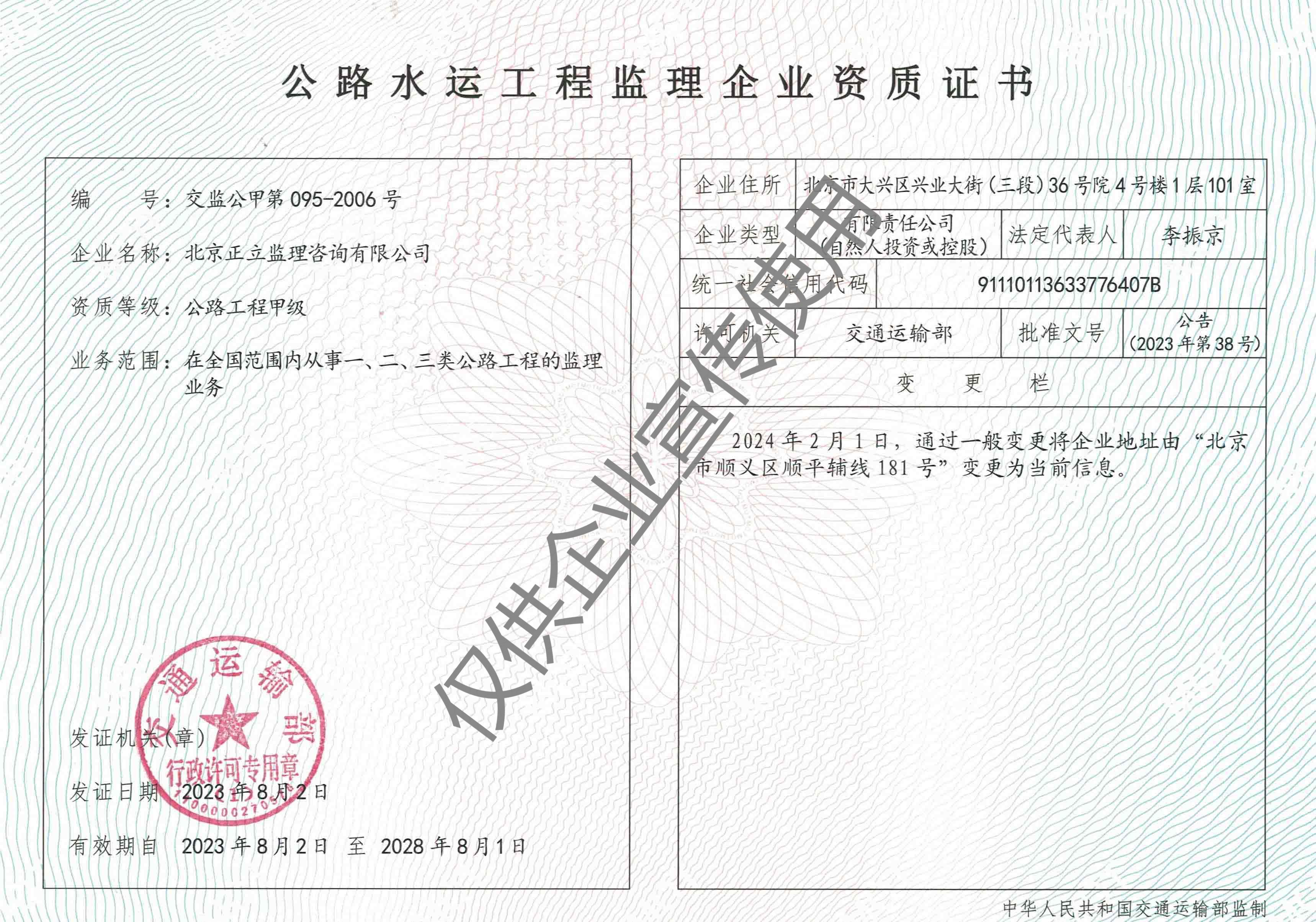 北京正立監(jiān)理咨詢(xún)有限公司成立于1998年7月1日,其前身隸屬于北京市公路質(zhì)量監(jiān)理站。具有獨(dú)立法人資格,是獨(dú)立核算、自負(fù)盈虧的經(jīng)濟(jì)實(shí)體。企業(yè)經(jīng)營(yíng)范圍:公路工程監(jiān)理、交通工程監(jiān)理、市政公用工程建設(shè)監(jiān)理、工業(yè)與民用建筑工程監(jiān)理、工程監(jiān)理咨詢(xún)、技術(shù)咨詢(xún)、技術(shù)培訓(xùn)等。